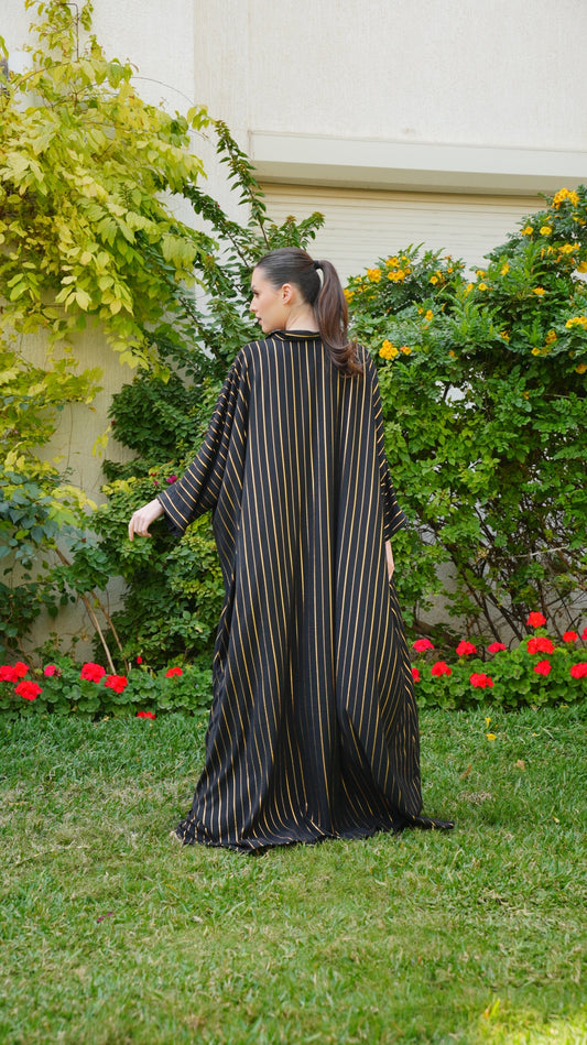 قفطان من القطن باللونين الأبيض والأسود