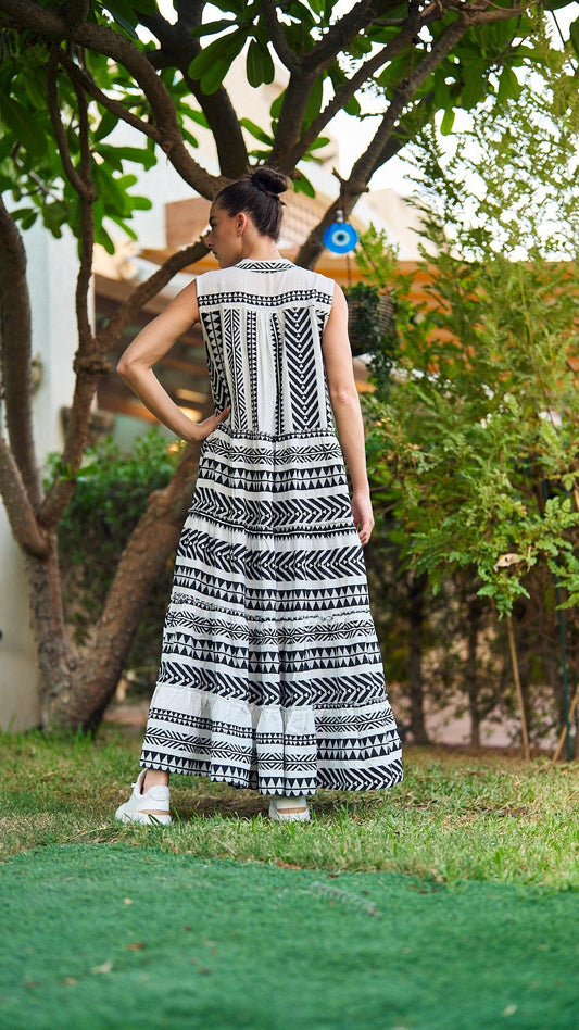 فستان ماكسي صيفي بدون أكمام باللون الأسود