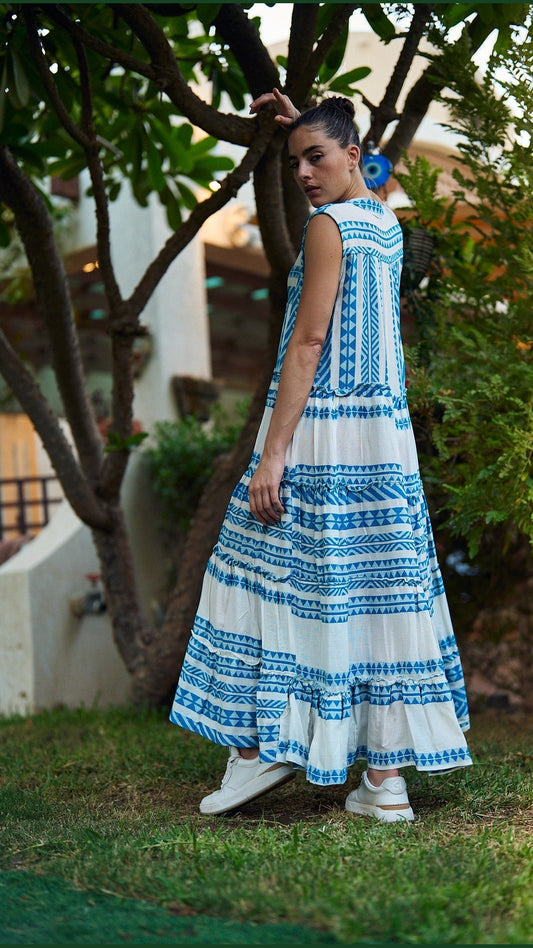 فستان صيفي ماكسي بدون أكمام باللون الأزرق الفاتح