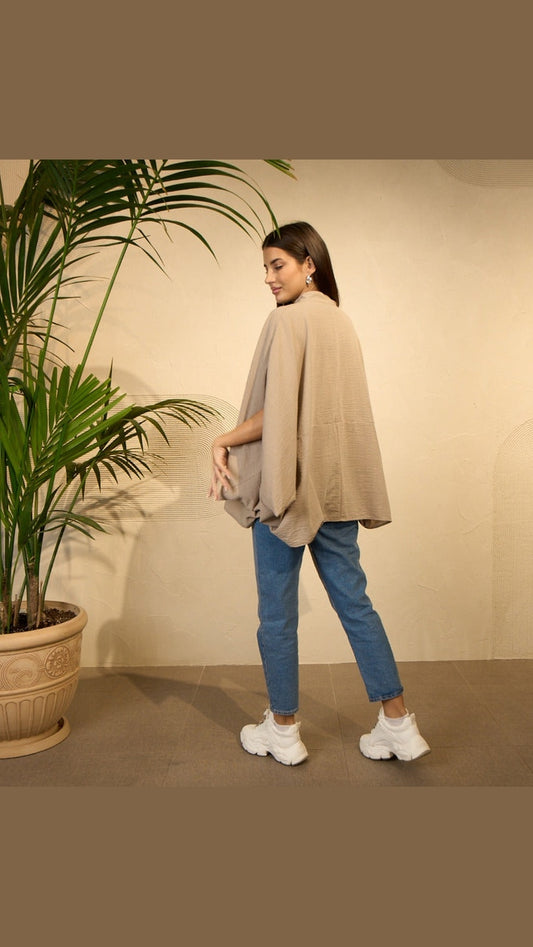 قميص بونشو نسائي كبير الحجم باللون البيج - مريح وأنيق ومتعدد الاستخدامات