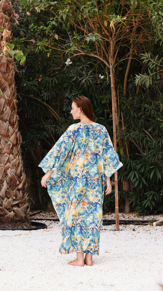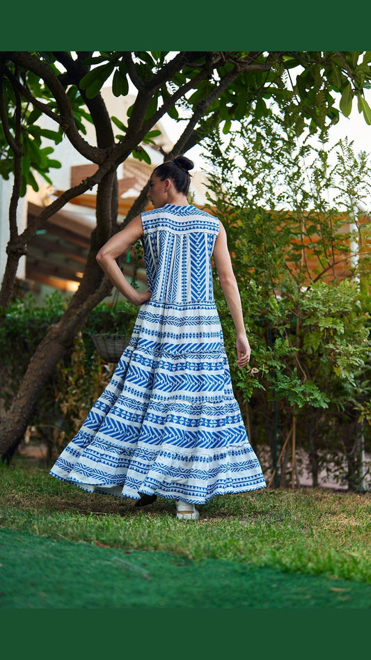 فستان ماكسي صيفي بدون أكمام باللون الأزرق