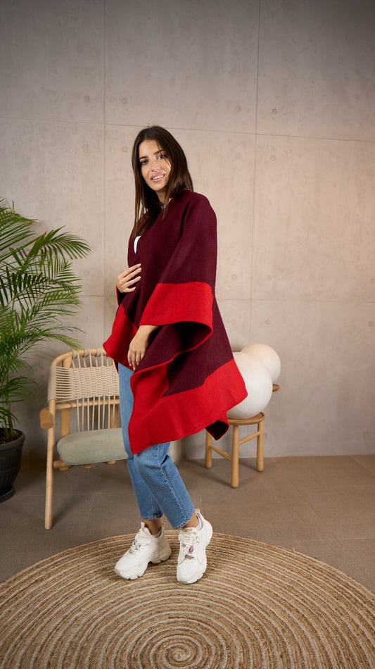 بونشو نسائي من صوف الكشمير باللون الأحمر - ناعم ودافئ وأنيق - مقاس واحد