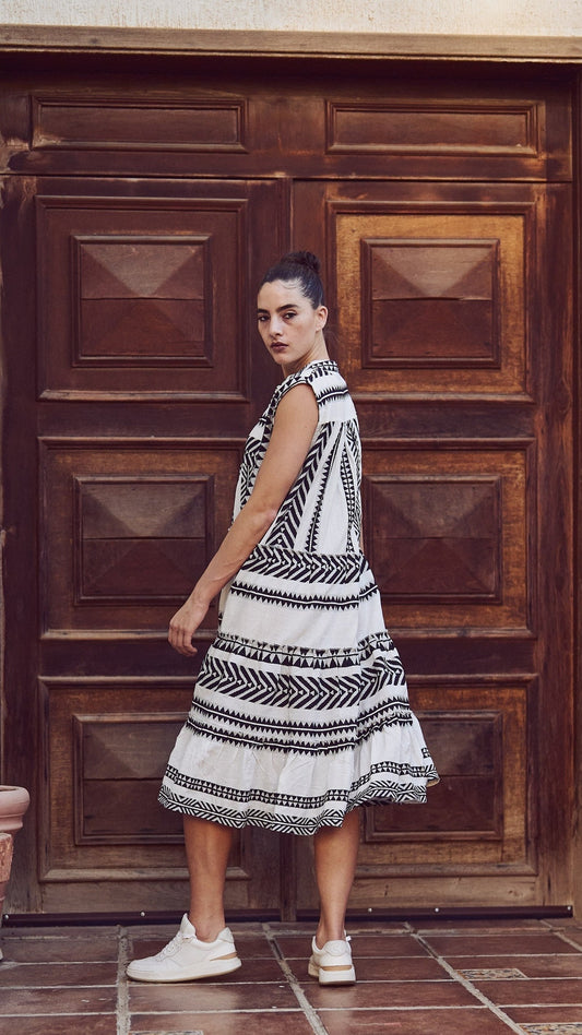 فستان صيفي أسود متوسط الطول بدون أكمام