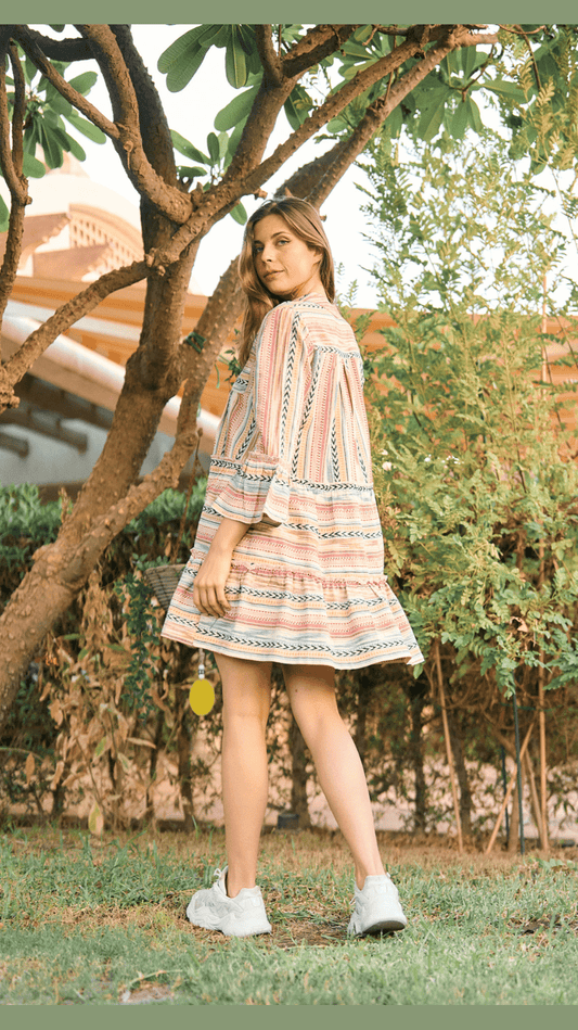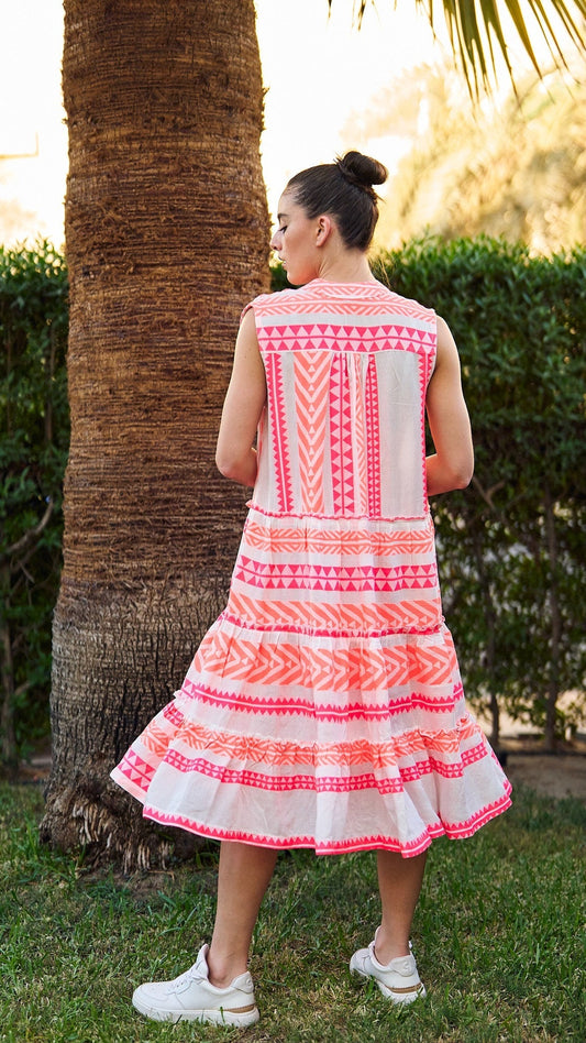 فستان صيفي بدون أكمام باللون الوردي والبرتقالي