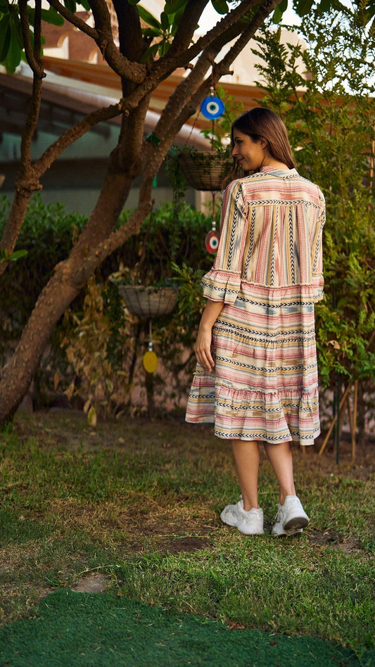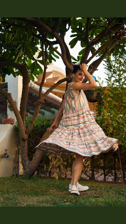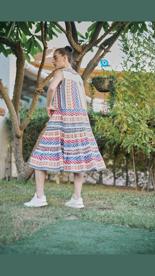 فستان صيفي متوسط الطول متعدد الألوان بدون أكمام
