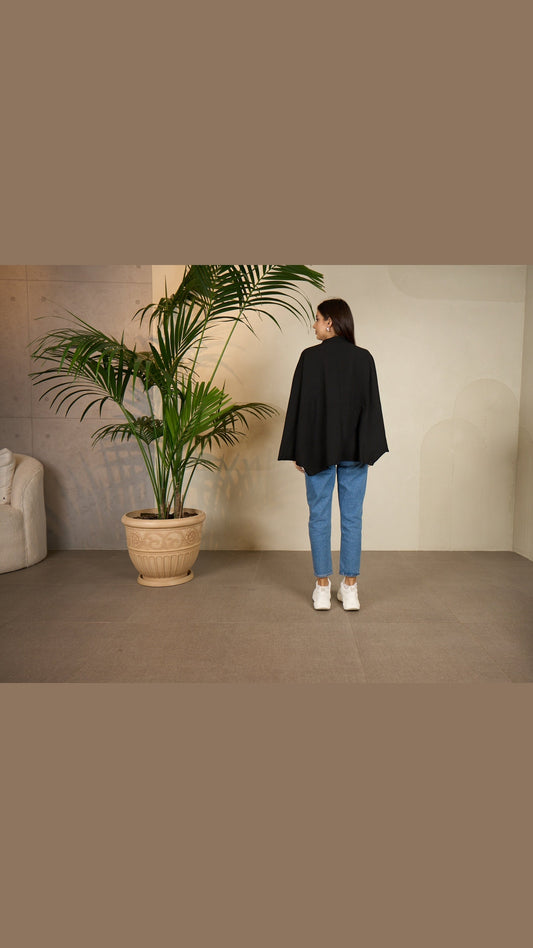 قميص بونشو أسود كبير الحجم للنساء - مريح وأنيق ومتعدد الاستخدامات