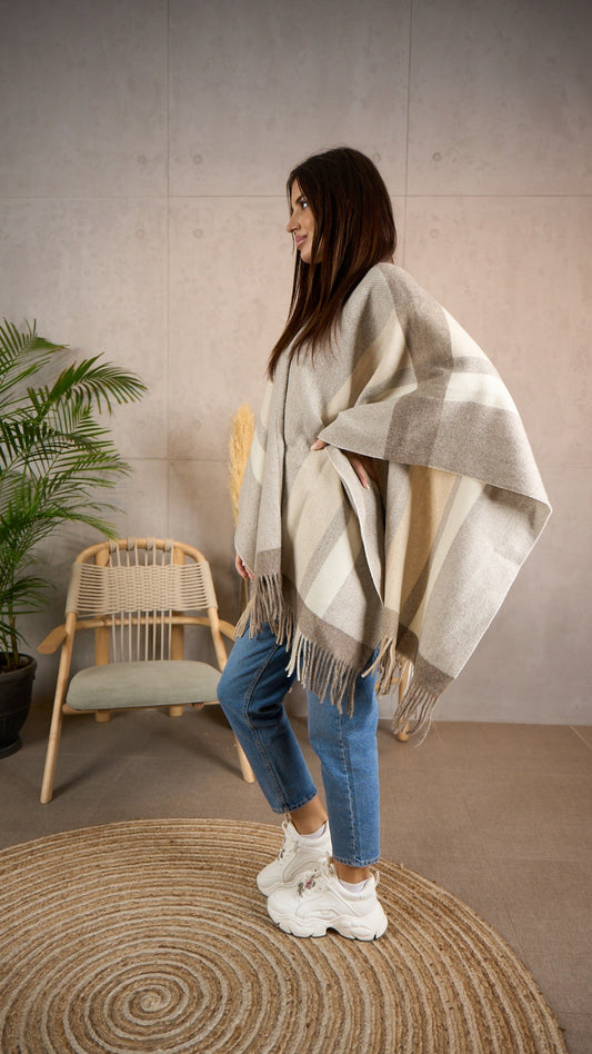 بونشو نسائي من صوف الكشمير باللون البيج - ناعم ودافئ وأنيق - مقاس واحد