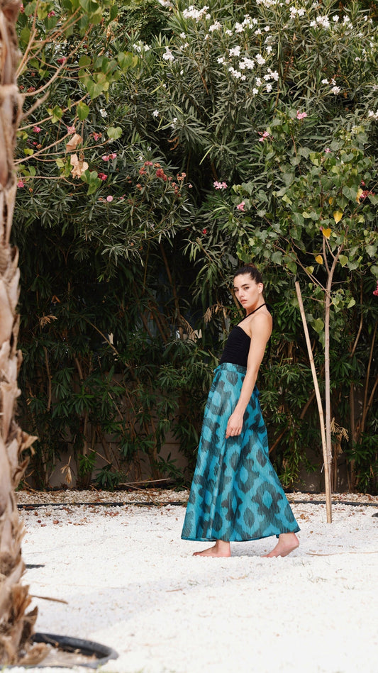 تنورة زرقاء وسوداء للشاطئ والمنتجعات