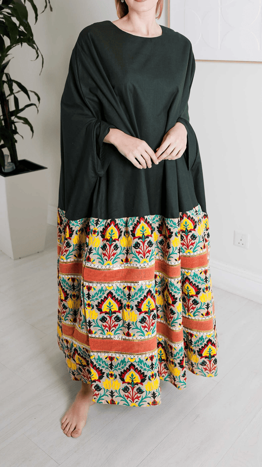 قفطان زهري ثنائي اللون مع بلوزة باللون الأخضر الداكن