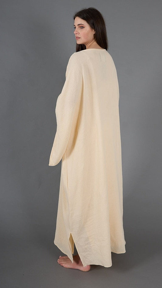 كيمونو أبيض عاجي مع تطريز ذهبي