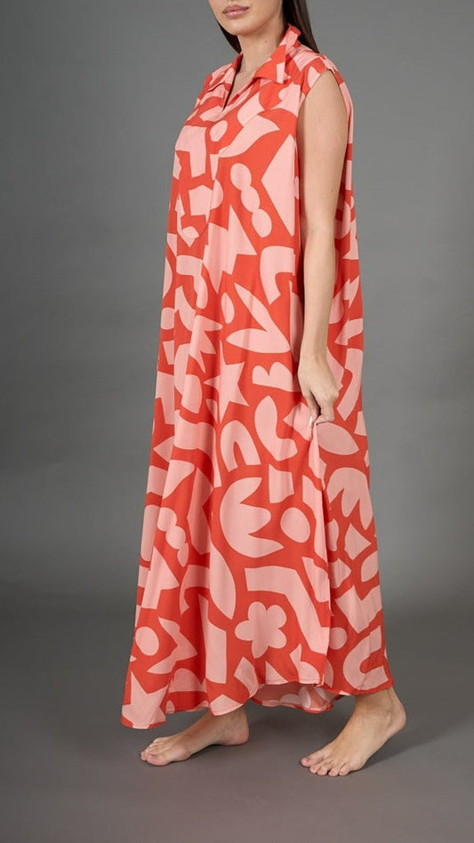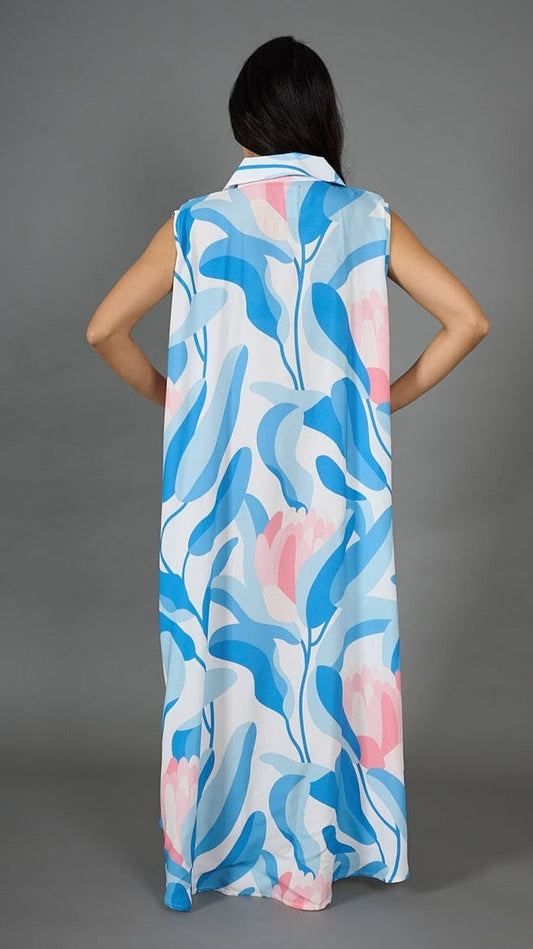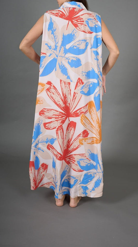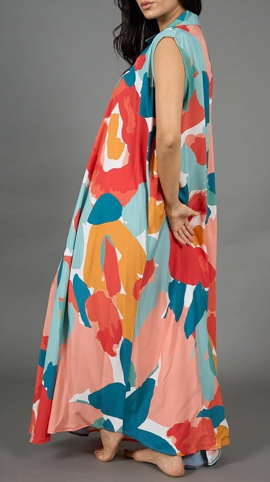 فستان قفطان بدون أكمام بطبعة فلامنغو