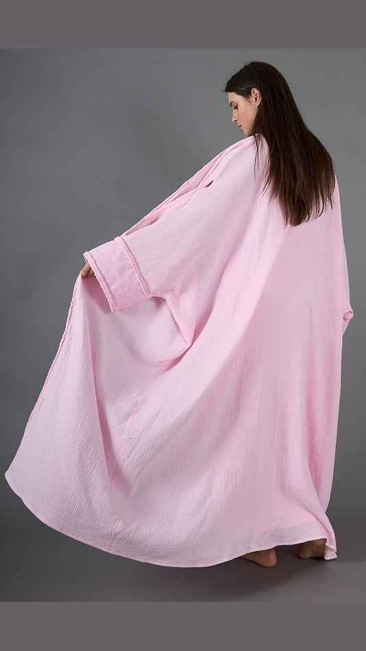 طقم قفطان من الشاش باللون الوردي الأنيق، مكون من قطعتين، مبطن