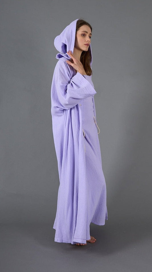 طقم قفطان من الشاش بغطاء للرأس، مكون من قطعتين، من أجل النعيم المنعش باللون الأرجواني