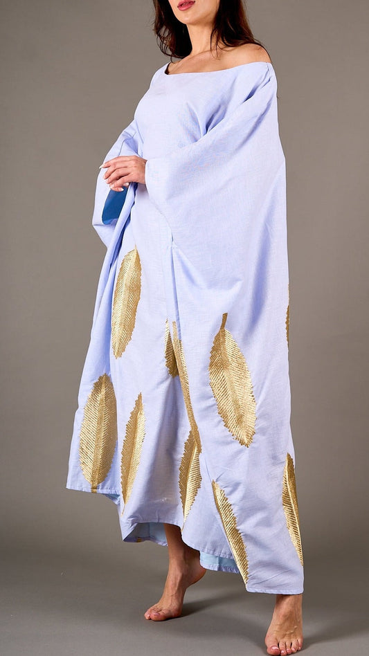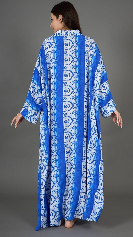 قفطان أزرق داكن مع تطريز أبيض، مبطن