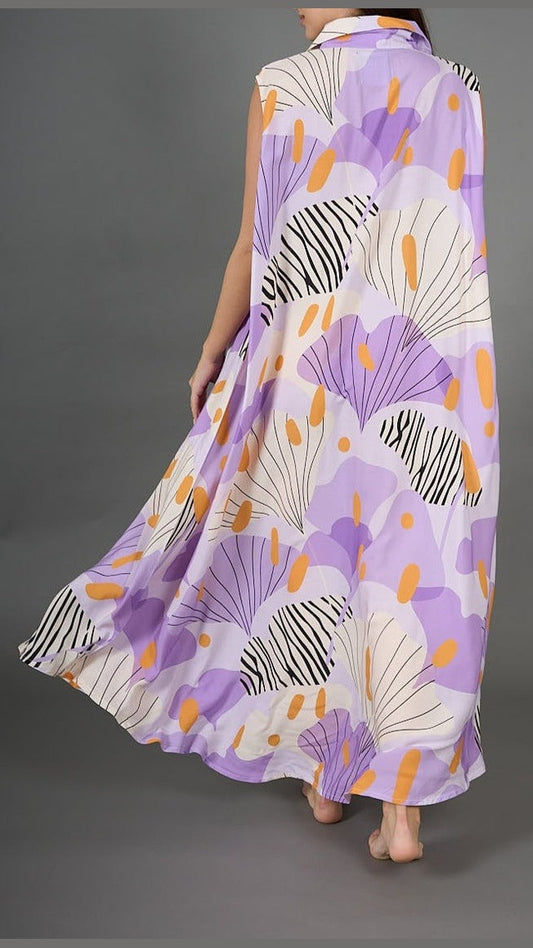 فستان قفطان بدون أكمام بطبعة أوراق الخريف