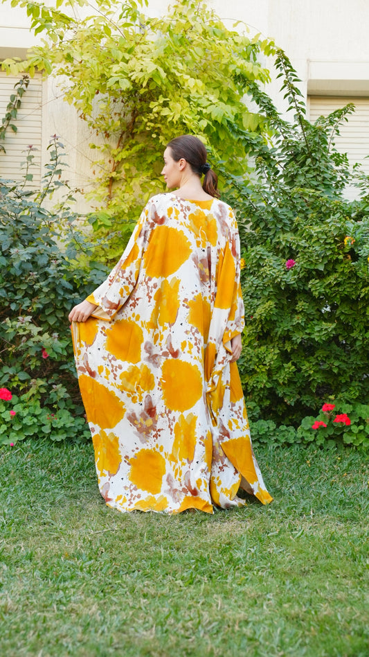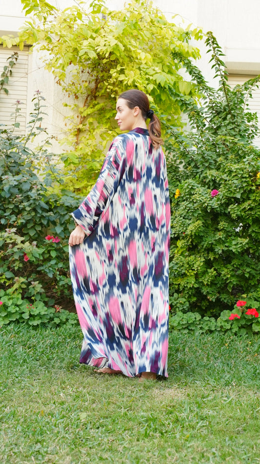 بتصاميم مزهرة وألوان نابضة وبمقاس فري سايز مريح، تنسدل القفاطين بشكل جميل على جميع أشكال الجسم. ناعمة، سهلة الحركة، ومناسبة للّبس طوال اليوم—هذه هي القفطان اليومي الذي سترجعين إليه دائمًا.