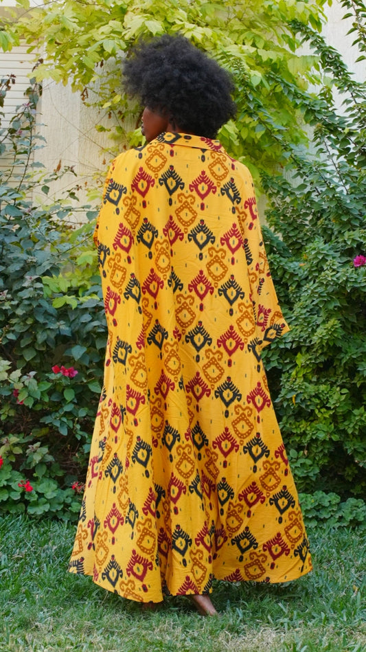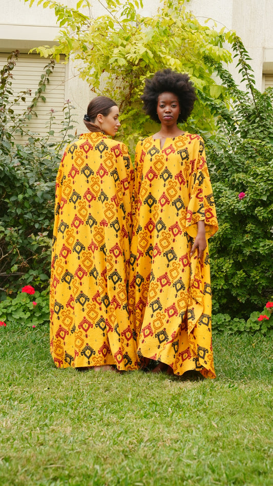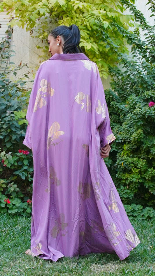 حيث تتشابك الراحة والأناقة: قفطان من القطن والحرير