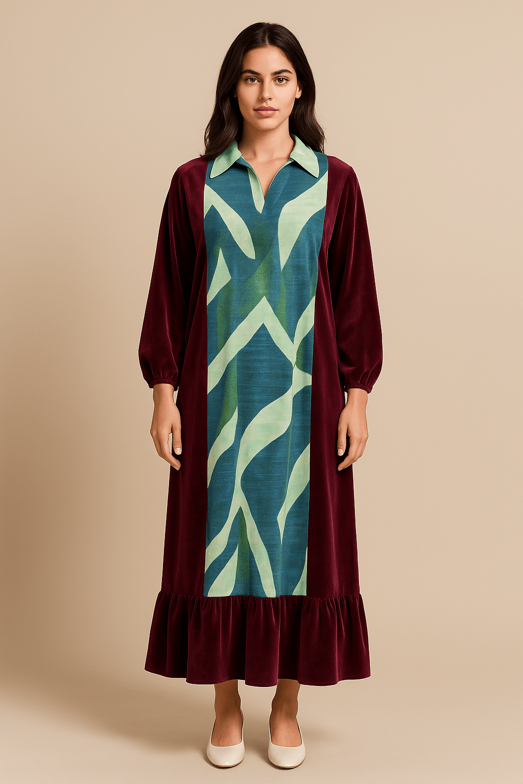 قفطان طويل وجميل من المخمل بياقة ماندرين 88