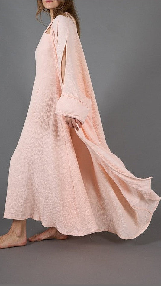 Pink Elegant 2-Piece Gauze Kaftan Set, lined
