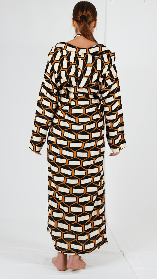 Beige Two piece breezy bliss: gauze hooded kaftan set, lined